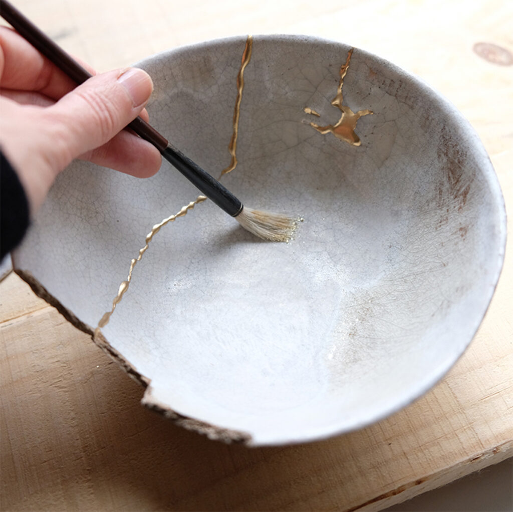 Un alt exemplu din cultura asiatică care mă inspiră la fel de mult este conceptul japonez Kintsugi, arta de reparare a ceramicii sparte cu lac auriu. Cioburile sunt amplasate laolaltă și împreună formează un obiect mai frumos decât cel inițial grație decorării cu aur. În loc să fie aruncat sau criticat pentru defectele sale, obiectul devine mai valoros ca oricând, întrucât deformarea sau defectul său se transformă în punctul forte, prin intermediu artei kinstugi, sporindu-i frumusețea. Pentru mine, acest concept Kintsugi reprezintă o metaforă irezistibilă, pentru că eu consider că dificultățile pe care le înfruntăm ne modelează și ne transformă în ceea ce suntem. La fel cum e nevoie de sare pentru a intensifica gustul, luptele pe care toți le avem de dus fac parte din istoria, identitatea și povestea noastră. În loc să încercăm să ne ascundem cicatricile, Kintsugi ne încurajează să le celebrăm, sărbătorind felul în care acestea ne definesc. Nimic nu este distrus definitiv, oricât de dureroasă ar părea inițial o anumită experiență. Iar într-un registru mai pragmatic, kintsugi ne îndeamnă să fim consumatori mai atenți și mai responsabili. Să nu fim victimele trecătoarei mode, ci să prețuim propriile obiecte vestimentare, concentrându-ne asupra procesului de reparare, în loc să renunțăm și să le înlocuim cu unele noi. Este spre binele mediului înconjurător, al conturilor noastre bancare și ne scutește de supraagolomerare.