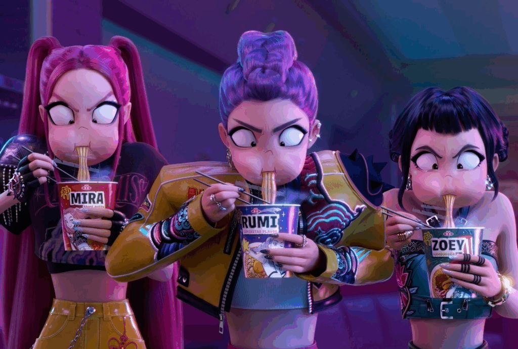 În animația Kpop Demon Hunters, disponibilă pe Netflix, lupta împotriva demonilor nu se duce doar pe scenă, ci și… la masă. Rumi, Mira și…